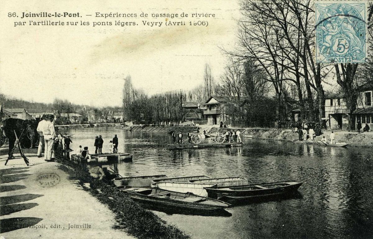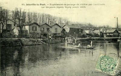 Expérience de passage de rivière par l'artillerie sur pont léger