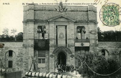 Porte du sud du château pavoisée à l' occasion d'un jour de fête