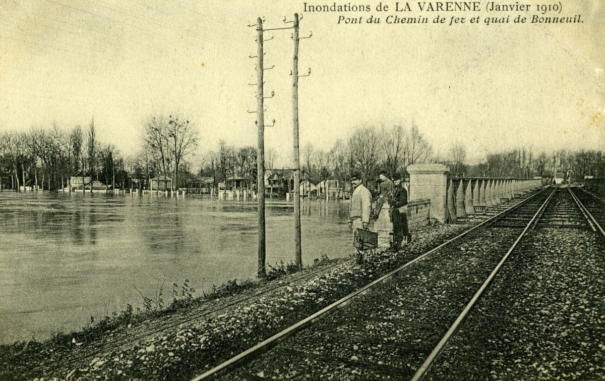 Inondation de 1910 - Pont du chemin de fer et quai de Bonneuil