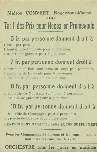 Tarif des prix pour noces en promenade-carte recto-verso