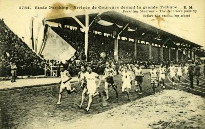 Stade Pershing - Arrivée de Coureurs devant la grande Tribune
